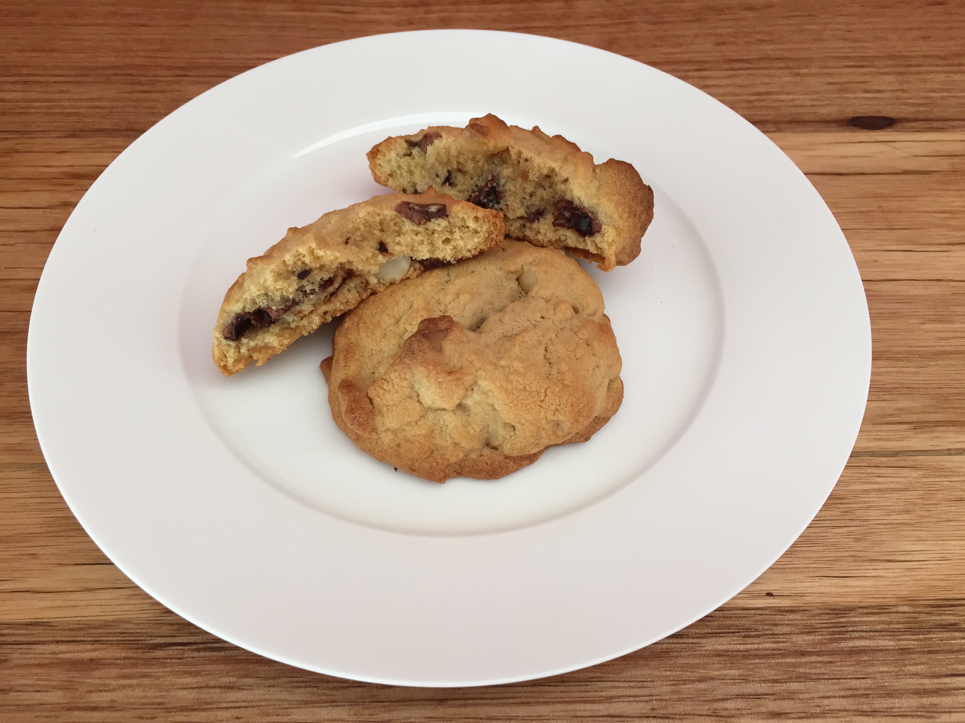 Preheat oven to 160o C. Line baking trays with baking paper. Beat butter, sugars and vanilla until smooth. Add the egg and mix well. Stir in flour in 2 batches. Add nuts and chocolate – stir through. Place tablespoons of the mixture onto the trays – space out as they will spread. Bake for 12 – 15 minutes until lightly browned. Cool on a wire rack.